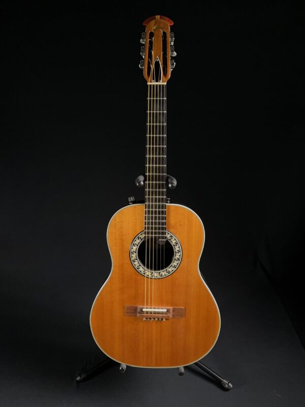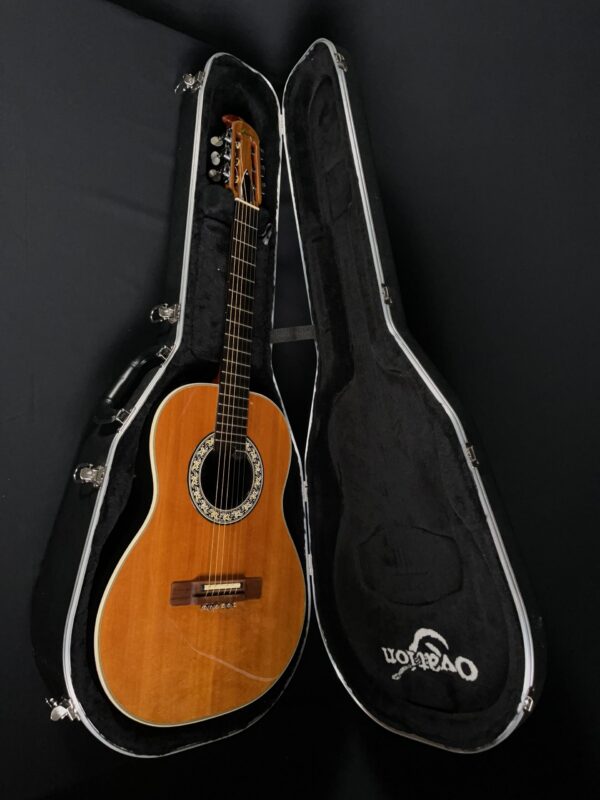 The Ovation 1616 Concert Classic Acoustic Guitar was made from 1979 – 1984. 12 frets to body. Spruce top. Sounds great!!