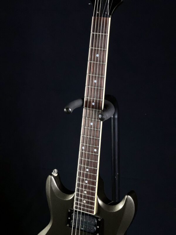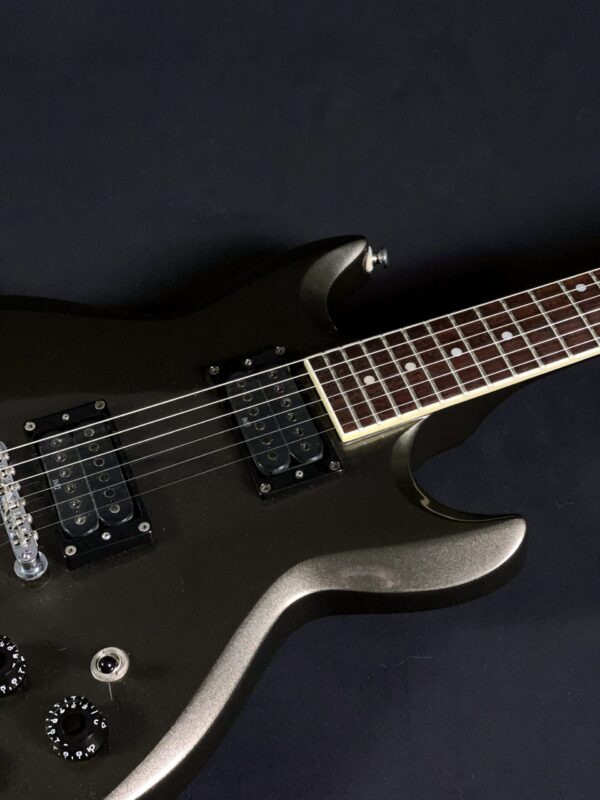 This 1999 Ibanez AX 320H Electric Guitar is a sleek and powerful instrument, built for versatility and performance. Featuring a double-cutaway mahogany body and dual humbuckers, it delivers rich, full-bodied tones suited for a variety of genres. It includes a drop tuner for the low E string, allowing for quick tuning changes on the fly. In very good condition, this guitar has a minor chip in the headstock (as shown in photos) but remains fully functional and plays great.
