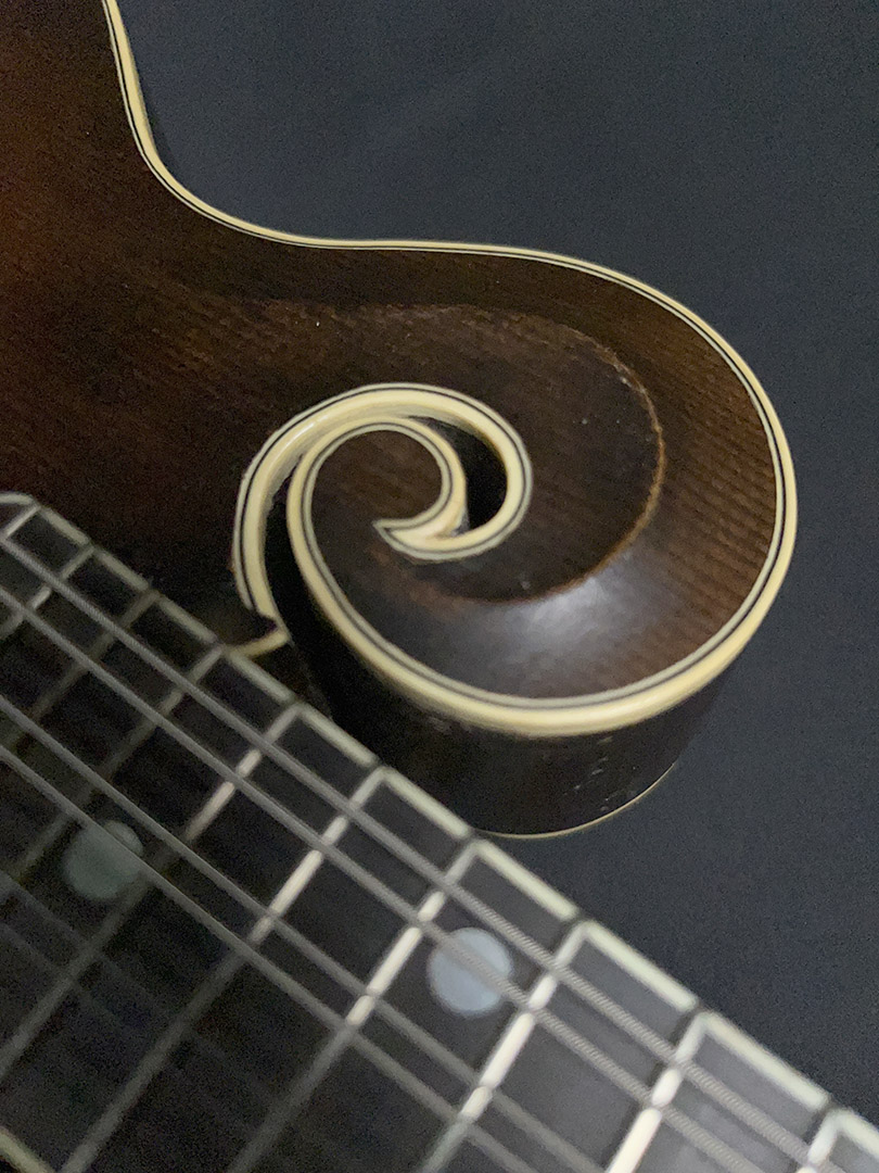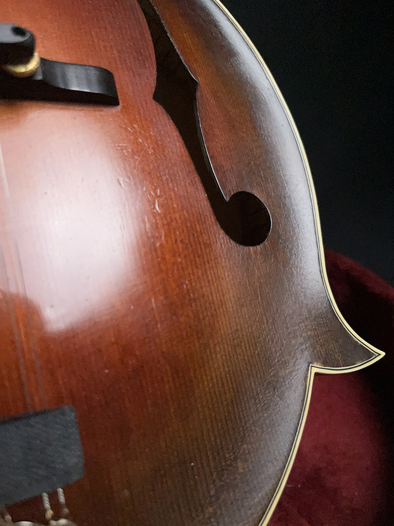 When we took possession of this instrument, it had a slight crack in the head stock near the flourish. So we contacted its maker, Don MacRostie, world-class luthier and maker of all Red Diamond mandolins. We sent him pictures and asked for his advice on the minor repair. Don was very responsive and recommended we work with Pete Hart, his friend and neighbor, also a world-class luthier and maker of Buckeye Mandolins (another high-end mandolin brand). We contacted Pete, and he very graciously agreed to take a look at the mandolin for us. We sent it to him in Ohio, and he did an incredible job on the minor repair (as he has built over 140 high-quality mandolins in his lifelong pursuit of the craft). Pete brought the instrument into his home where his family and friends played the instrument. He even even set it up for us. Before he shipped it back to us, he texted us and said, “Don came by this morning and was very pleased with the work.” (Also, interesting note, Pete told us that this mandolin is the twin of a mandolin owned and played by famous bluegrass musician Don Rigby). It’s an beautiful mandolin that plays and sounds as good as one could ever hope. It’s a true honor to have one in the store!