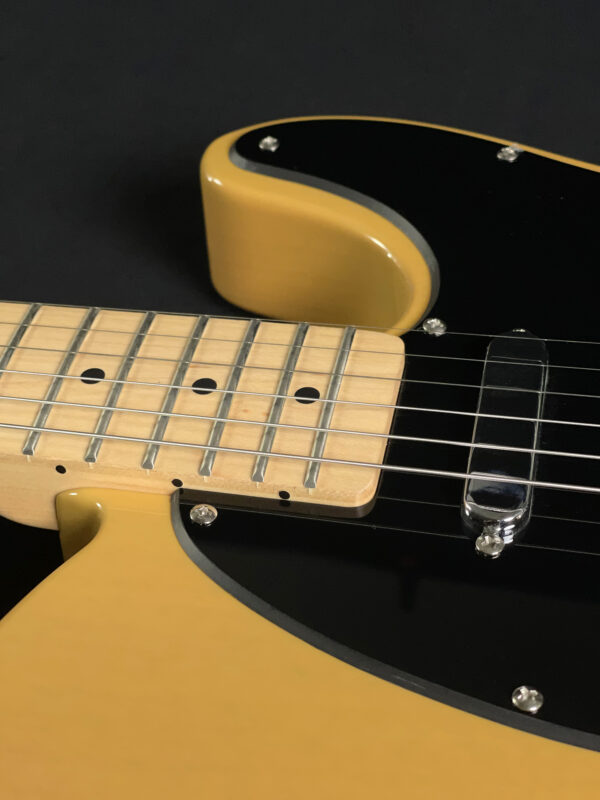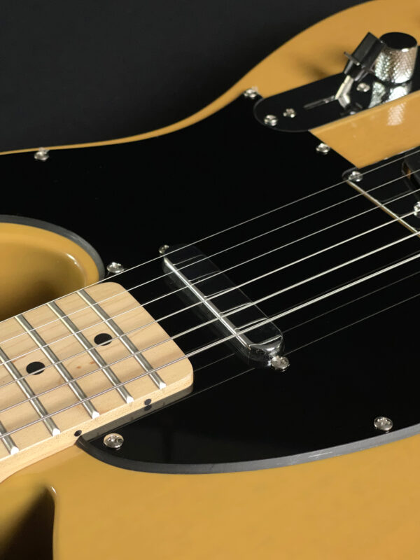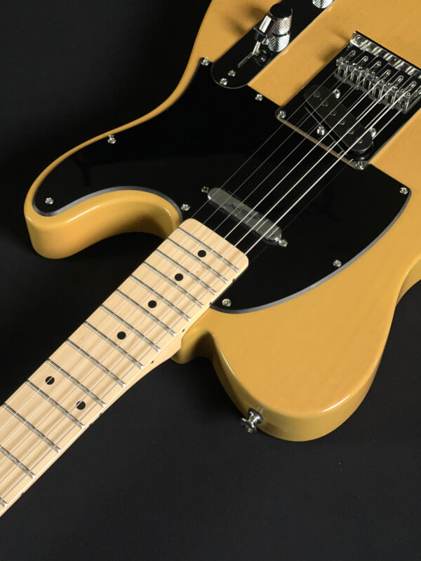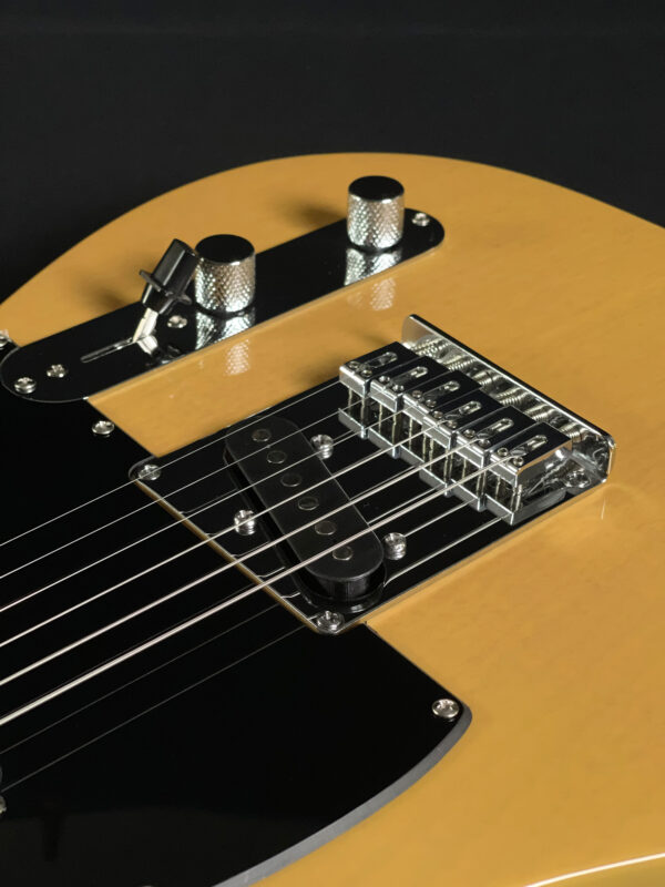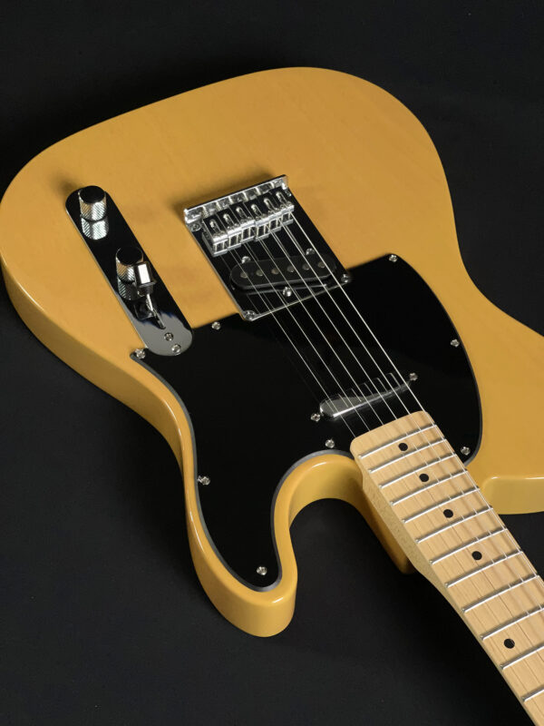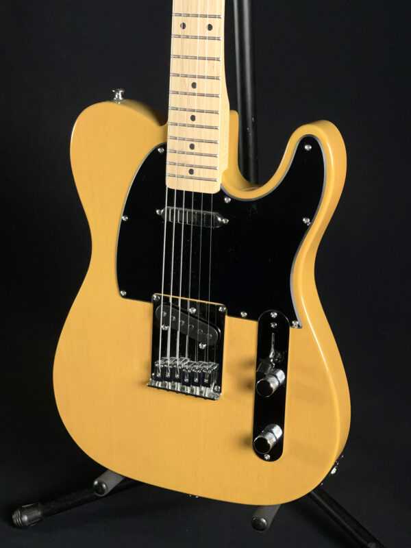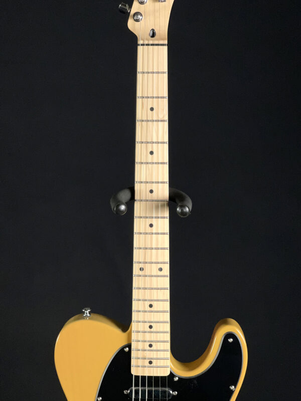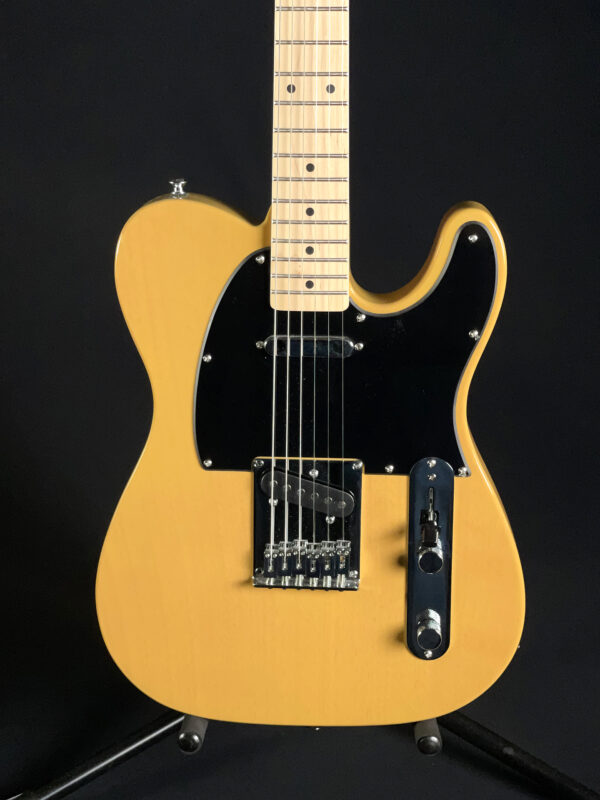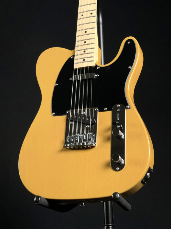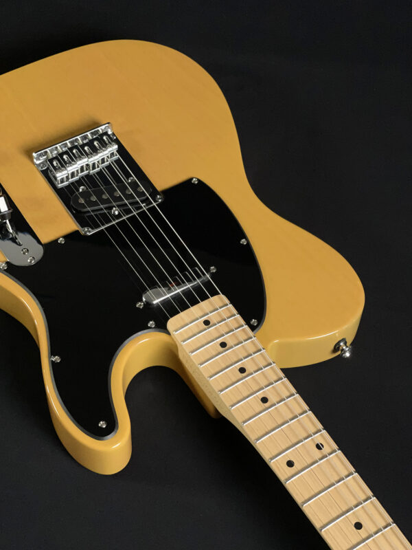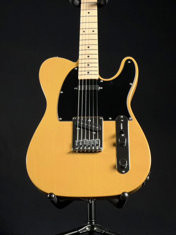 Built with a poplar body and a satin-finished maple neck, this model features a 25.5″ scale length, 21 medium jumbo frets, and a comfortable “C”-shaped profile. It’s equipped with two single-coil Tele pickups, a 3-way selector switch, and a 6-saddle hardtail bridge for precise intonation. A great option for players looking for reliable Tele tone and feel.