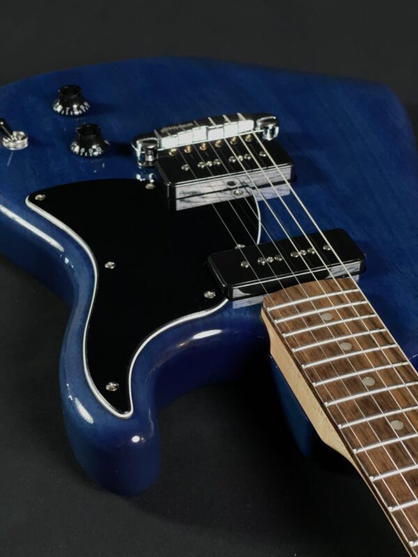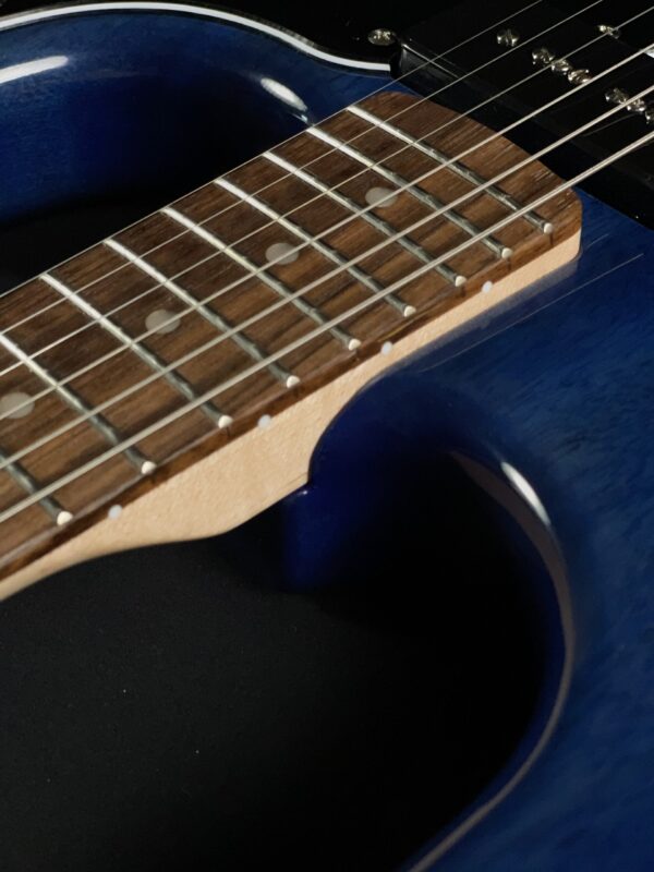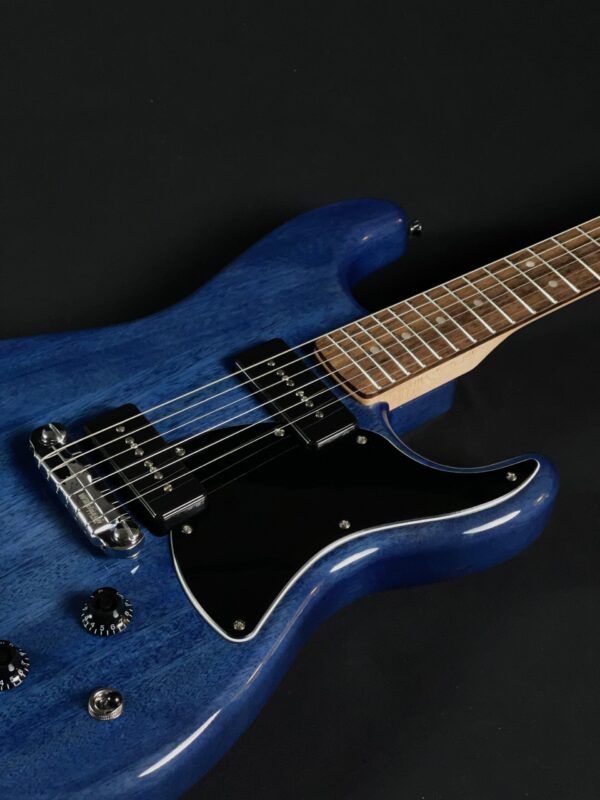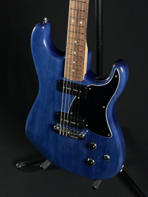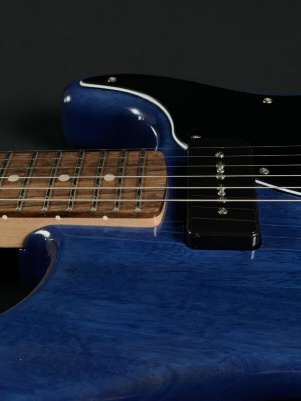 The 2024 Squier Paranormal Strat-O-Sonic reimagines the iconic Stratocaster with bold features and unique tonal versatility. In excellent condition, this guitar features a Sapphire Blue finish, a comfortable C-shaped maple neck, and a fast-playing 12″ radius laurel fingerboard. Its shorter 24.75″ scale length makes it exceptionally easy to play.