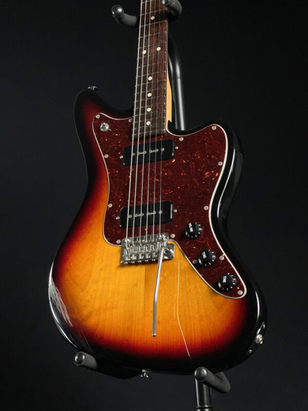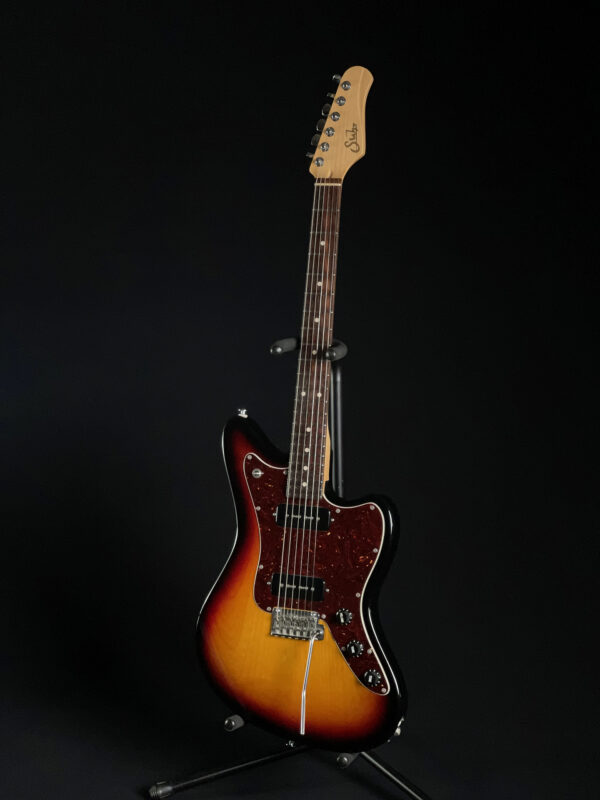 This Suhr Classic JM in 3‑Tone Burst finish is in excellent condition, with minimal signs of use and all electronics and hardware performing flawlessly. It features Suhr’s sleek Jazzmaster-inspired body, dual noiseless S90 single-coil pickups, and a smooth 2-post tremolo bridge for expressive playing and solid tuning stability.